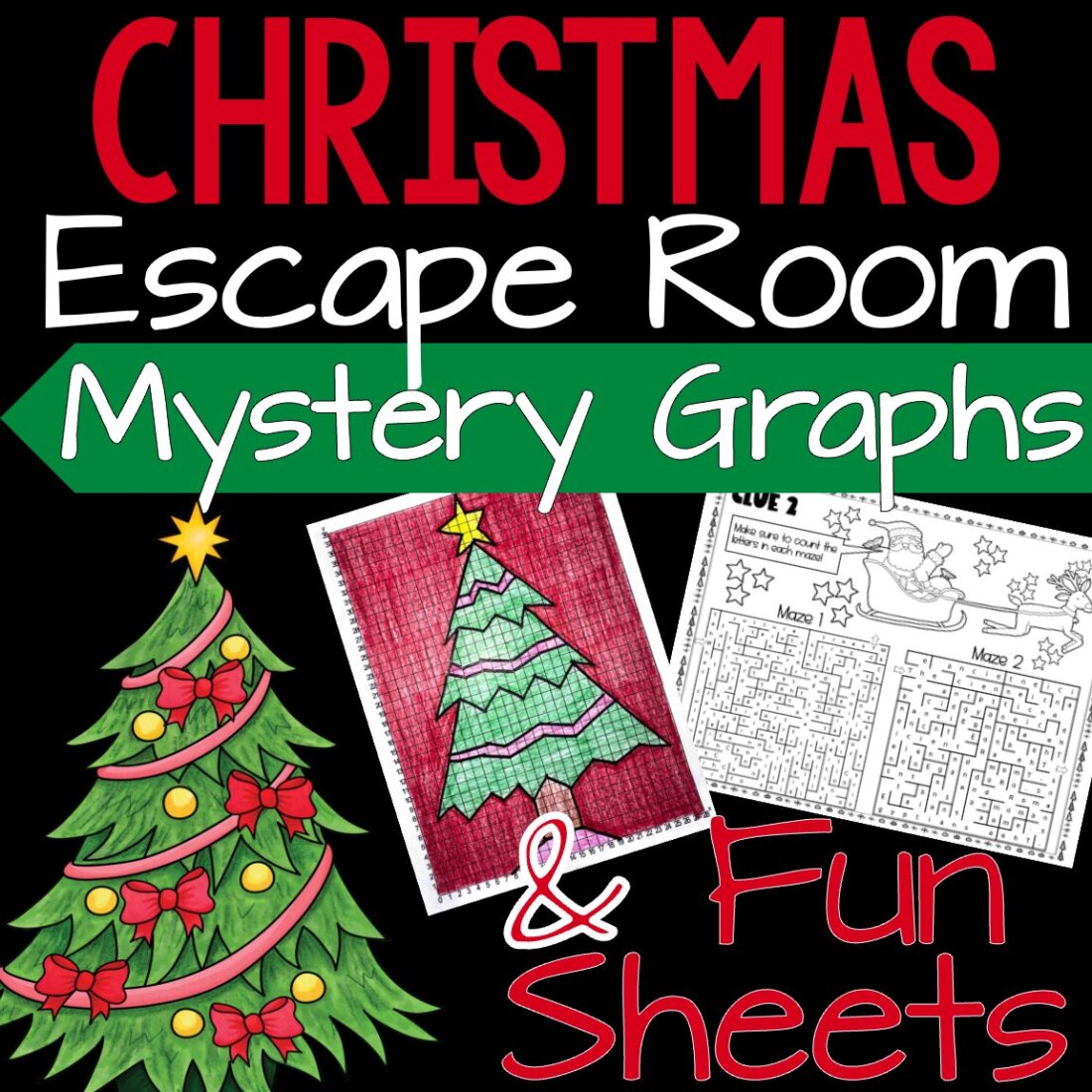 Christmas Activities Escape Room Game Math Coordinate Graphing & Worksheets