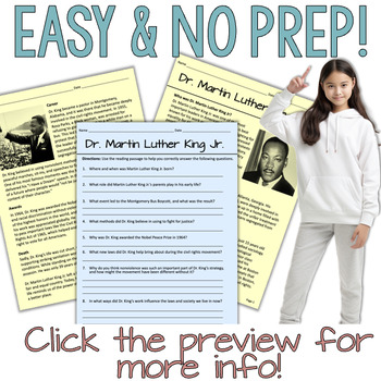 Dr. Martin Luther King, Jr. Day is a great teaching opportunity to acknowledge an important person in American history. MLK was instrumental in leading the Civil Rights movement. This reading comprehension lesson with one quadrant only coordinate graphing mystery pictures is also a wonderful way to teach important figures for Black History Month. Includes vocabulary practice, comprehension worksheet, crossword and word search, and even a choice board activity!